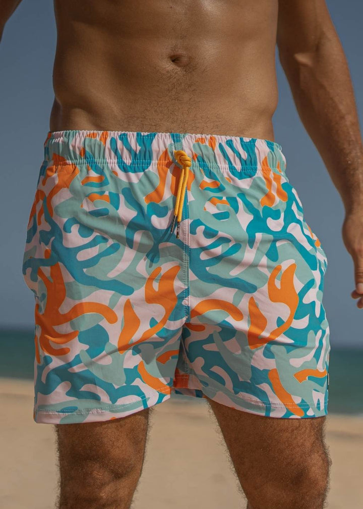 Arrecife swim trunks are the colorful and comfortable swim shorts you've been looking for. The latest in lightweight, UV protected stretch swim trunks that are comfortable and great to wear on the beach or around your pool. Great Fit, Cool Style and a Trendy Color palette makes this one of our most comfortable swim trunks. Our exclusive cloth-like stretch UV-resistant material makes this perfect lounge-around-the-house trunks.