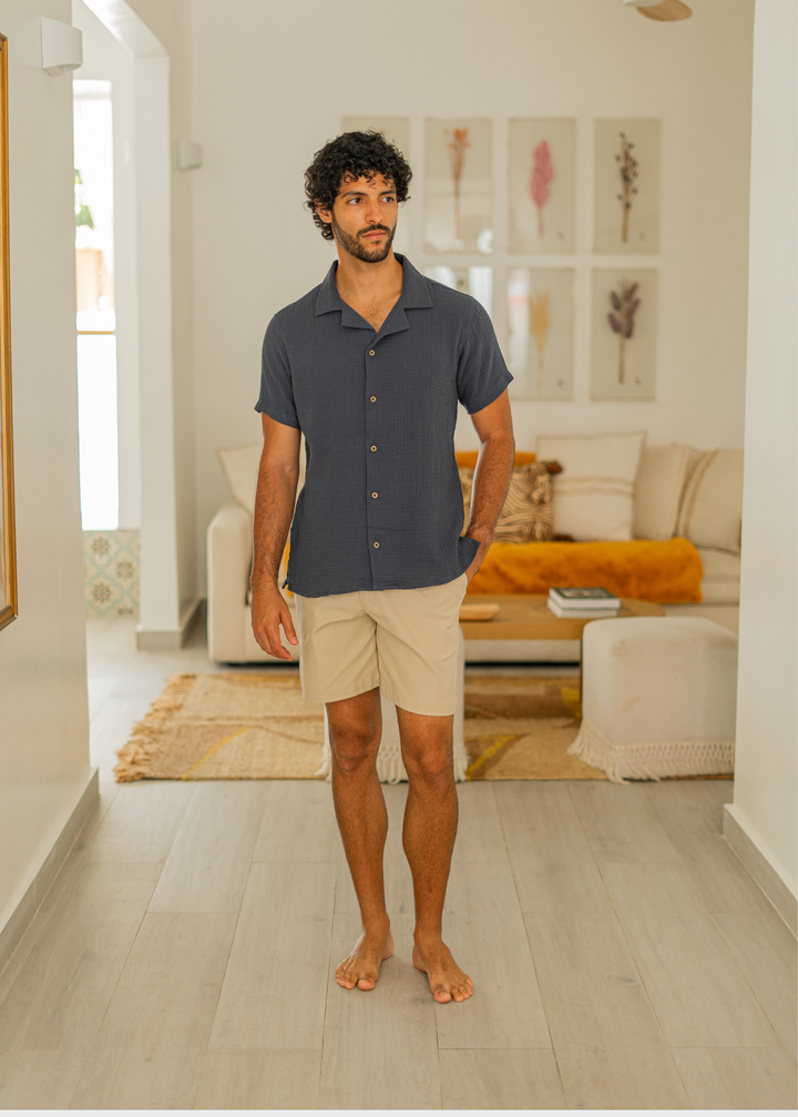 Classical but modern. Our chino shorts have been designed to make you feel comfortable all day long. With stretch fabric and elastic waistband at the back will do it your next masterpiece in your closet.