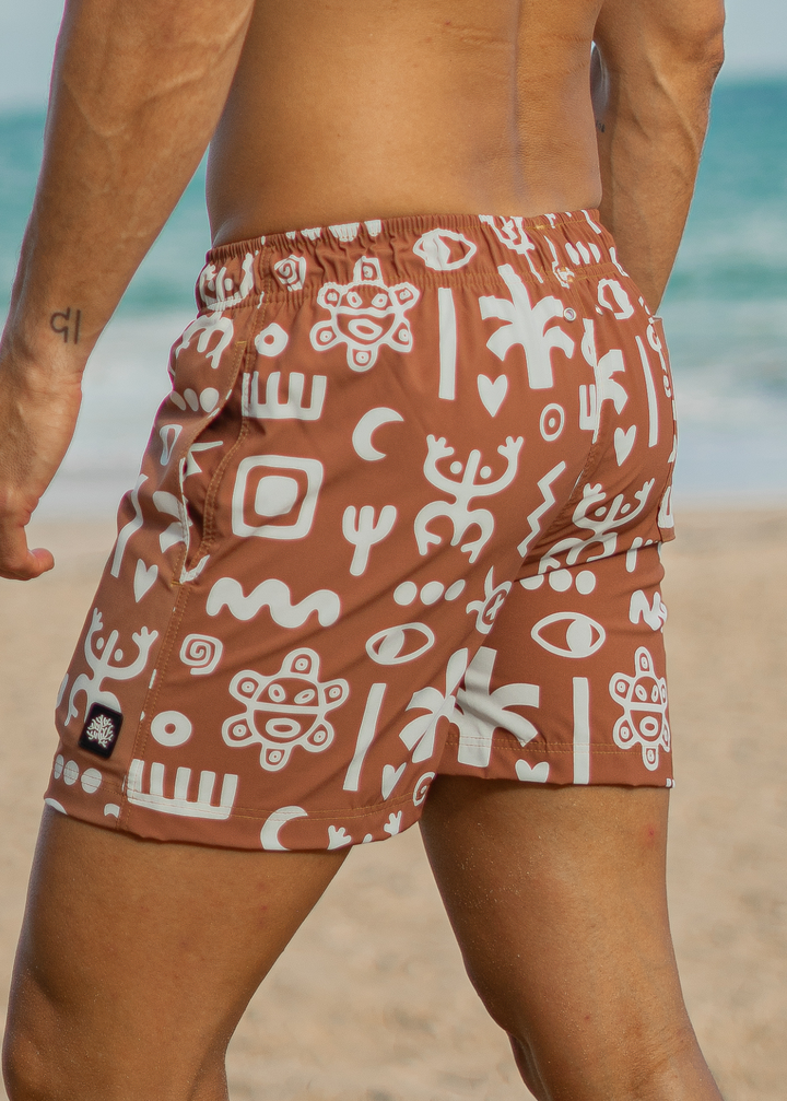 BORIKE, the Tainos pattern swim short, inspired by the rich cultural heritage of the Caribbean, adds a unique and eye-catching touch to your beach attire. Tainos culture was rich in artistic expression. Their art often featured symbolic motifs, including animals and geometric patterns.