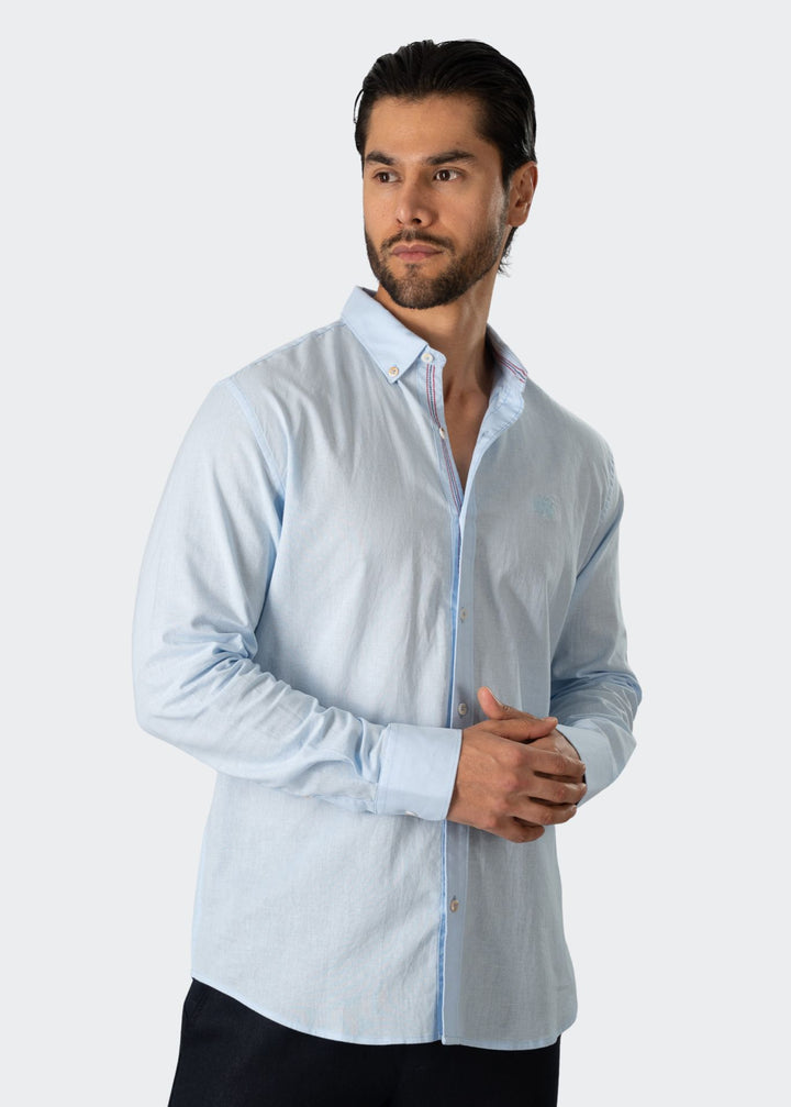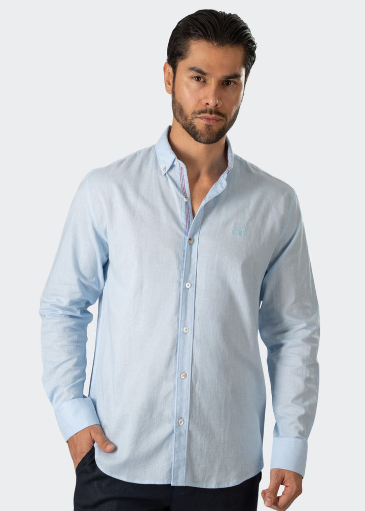 LIGHT BLUE LONG SLEEVE LINEN BLEND SHIRT