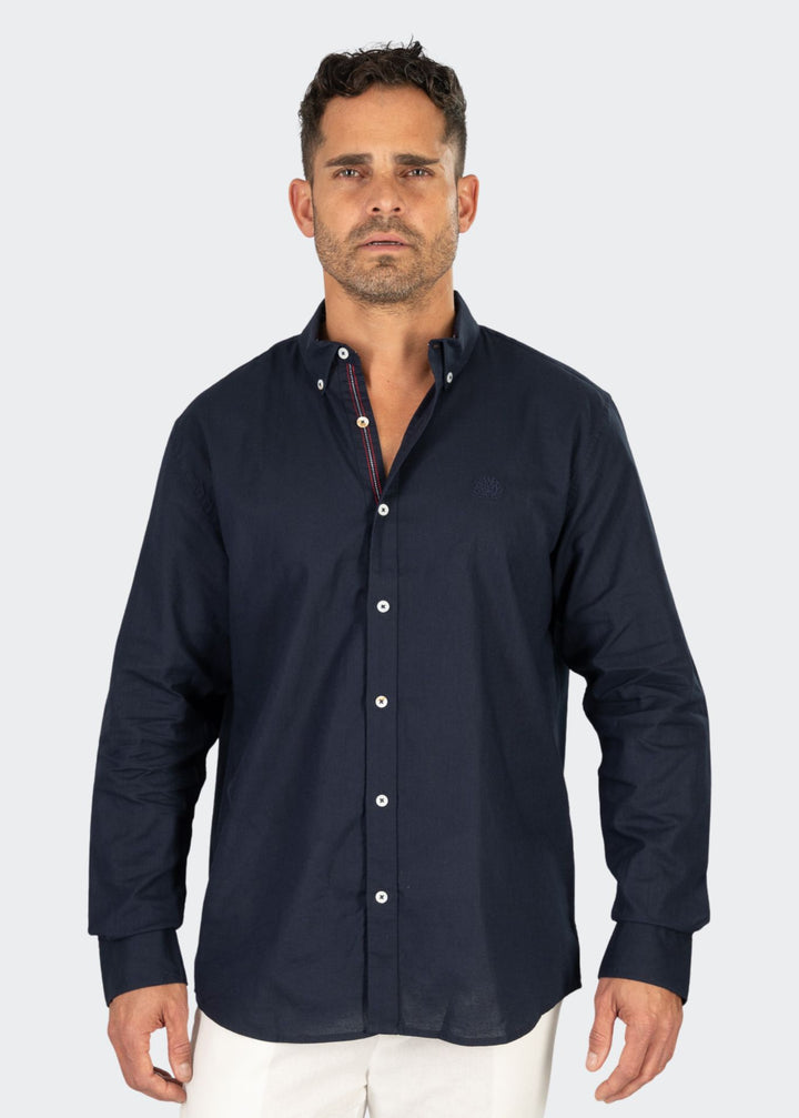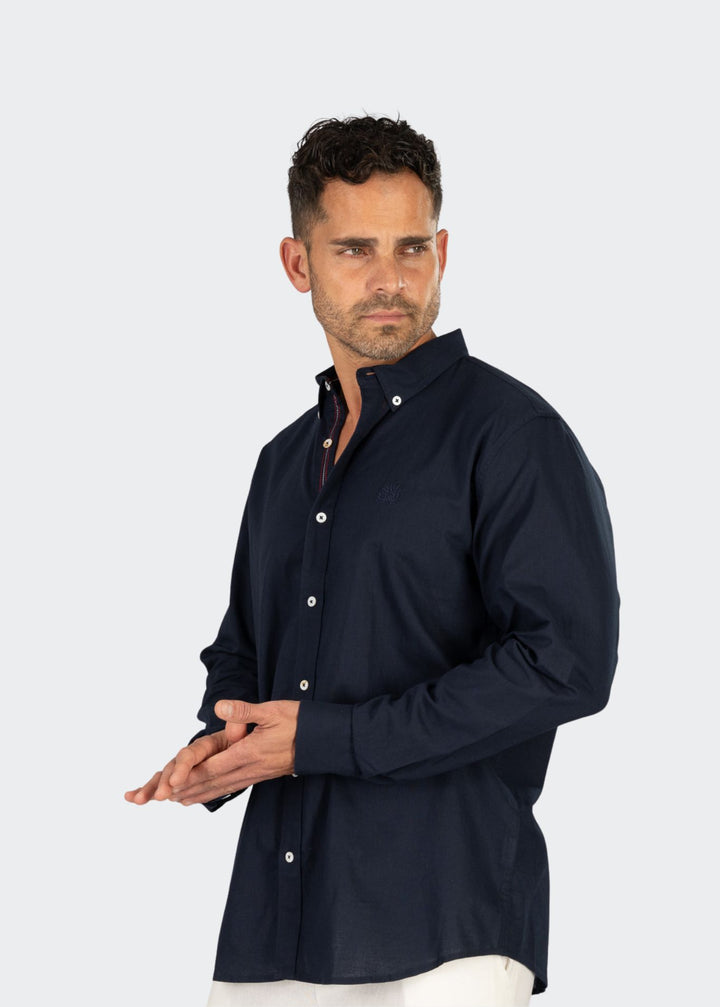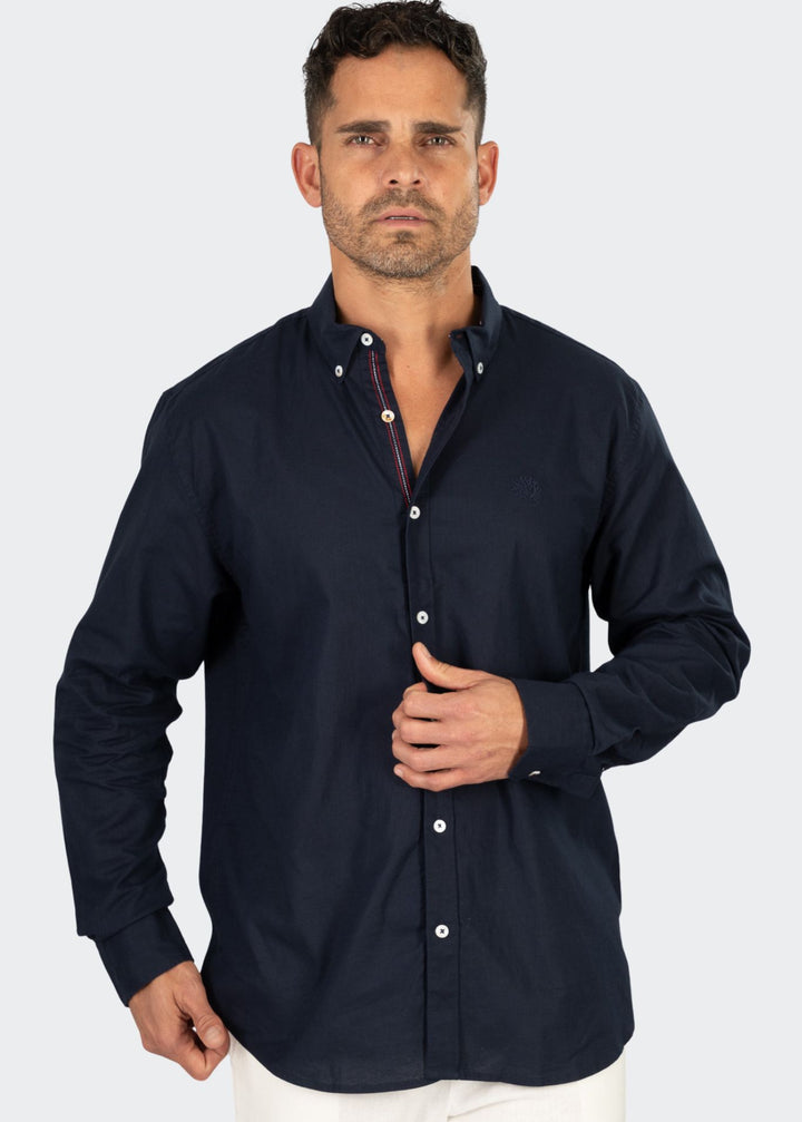 NAVY LONG SLEEVE LINEN BLEND SHIRT