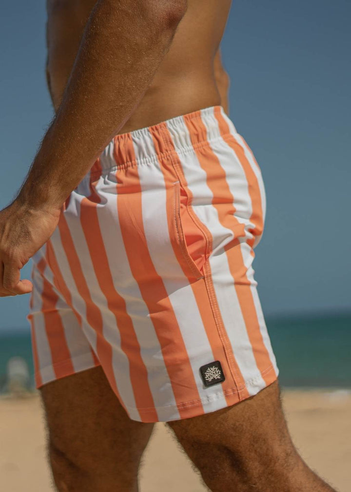 Are you ready to elevate your beach style? We believe that swimwear should be both functional and fashionable, and our Salmon Stripped Swim Short is the perfect combination of both.