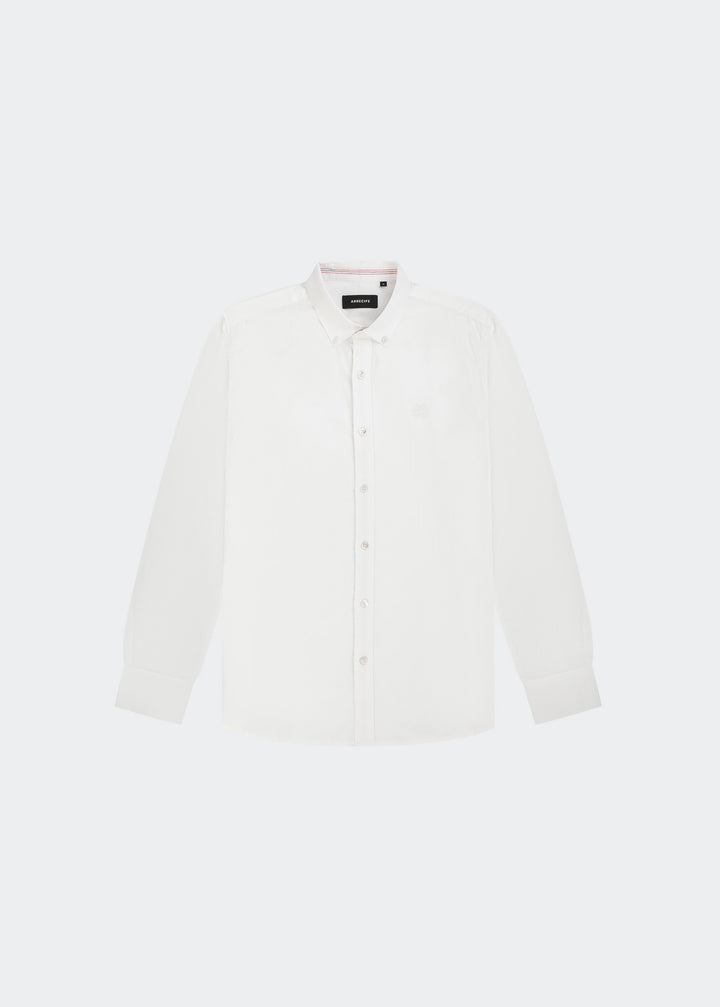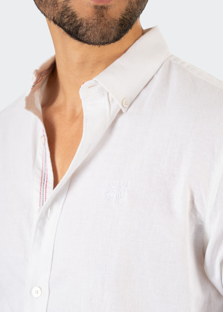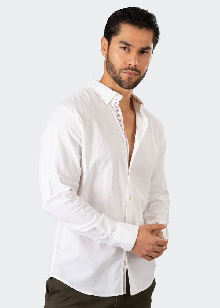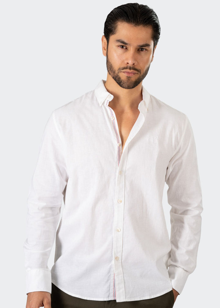WHITE LONG SLEEVE LINEN BLEND SHIRT